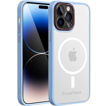 PuyaTeya cell phone case for iPhone 14 pro max case,[with MagSafe][translucent matte] shockproof scratch resistant protective case,[anti fingerprint] non-slip matte cell phone case(blue of the far peaks)